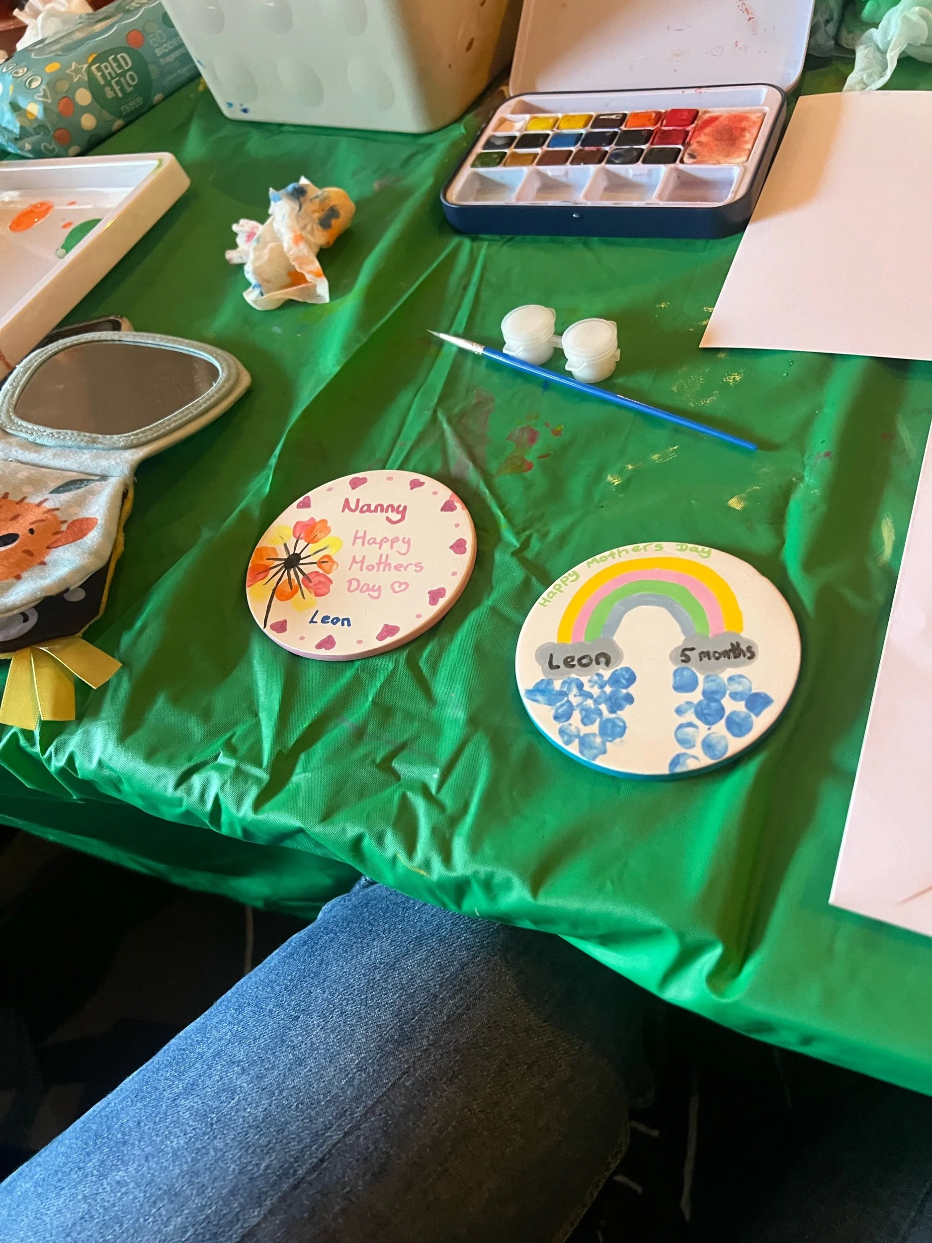 In this relaxed mum & baby craft session, you’ll make two ceramic flower coasters, using your baby’s fingerprints to form the petals. You’ll then add stems, leaves and finishing touches to create a meaningful keepsake you’ll treasure.